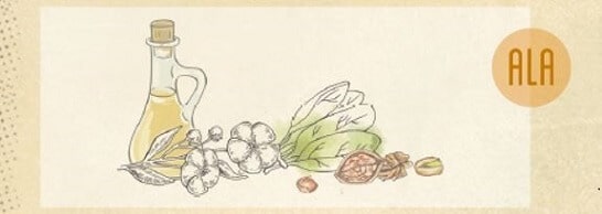 A növényi eredetű omega-3 zsírsav ALA (alfa-linolénsav) főként a lenmagban, a chia magban és a dióban található. A kapcsolódó növényi olajok, mint a lenmagolaj, a chiaolaj, a dióolaj és a repceolaj szintén különösen gazdagok ALA-ban.