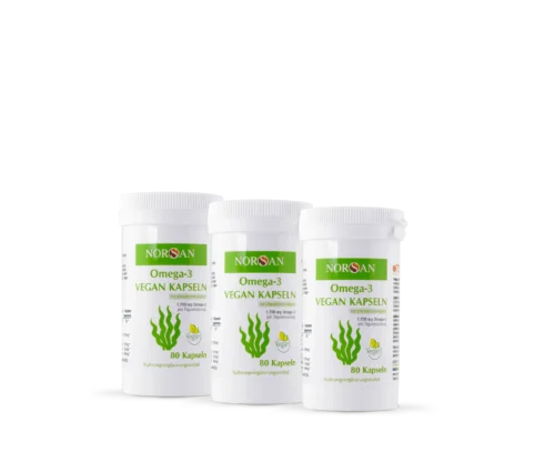 Mindössze 4 kapszula napi dózisával 1.700 mg tengeri eredetű omega-3 zsírsavat viszünk be. Így a vegán omega-3 kapszula ideális mindazok számára, akik állati eredetű élelmiszerektől mentes táplálkozást szeretnének. NORSAN algaolaj